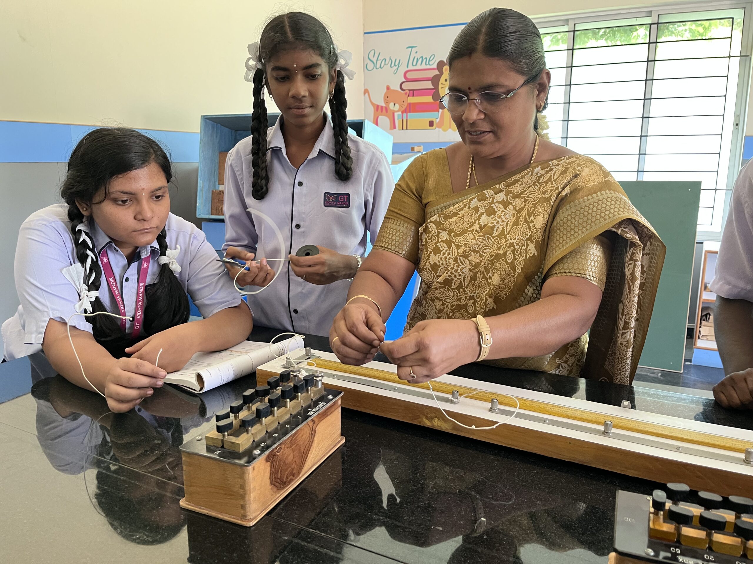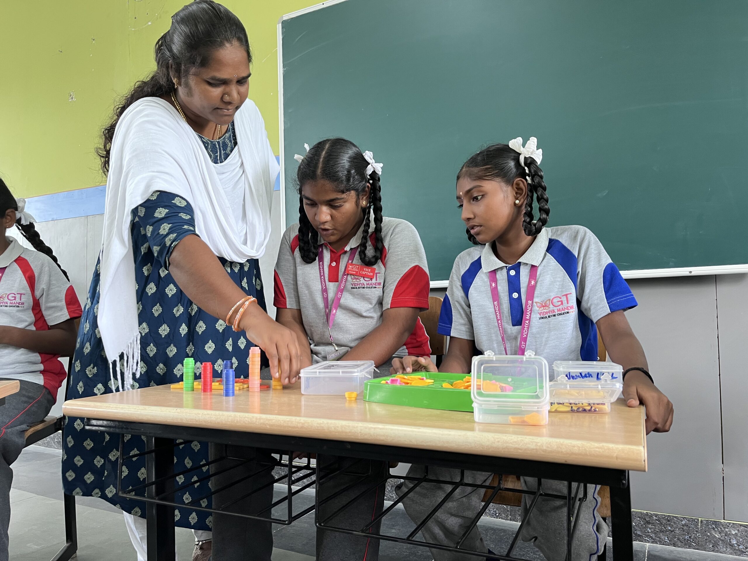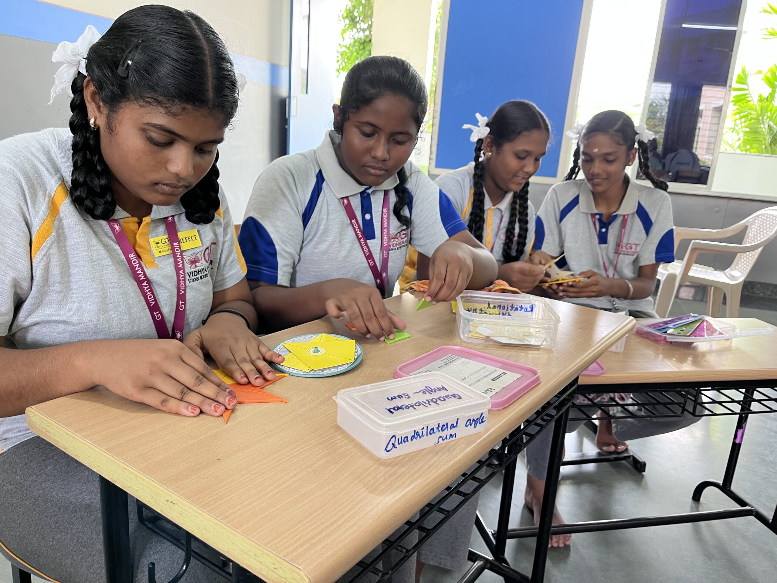 The activities of GTVM’s Math lab is designed in such a way that helps students to visualize, manipulate and reason the abstract concepts to concrete. Collection of games, puzzles, and other teaching materials helps the students to express creative ways of finding solutions.
