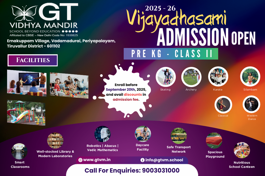 GT Vidhya Mandir Part Of GT Group Of Institutions one of the best CBSE School in Thiruvallur District Chennai